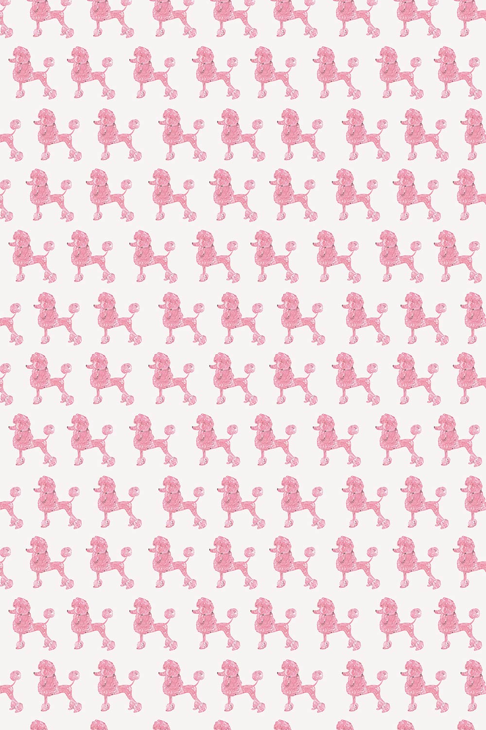 Textured performance vinyl wallpaper featuring watercolor poodles arranged in a playful stamped pattern; ideal for bathrooms, mudrooms, and commercial spaces.