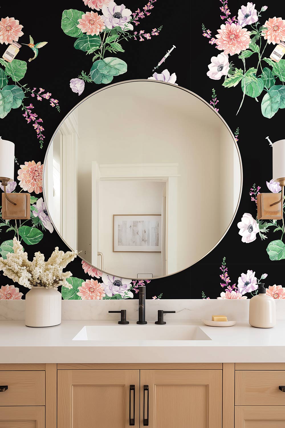 Walltox Botox Floral Performance Vinyl Wallpaper | Midnight Black