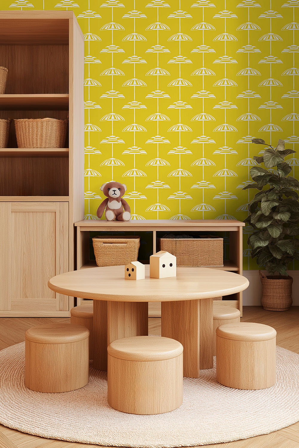 Beach Umbrella Stripe Performance Vinyl Wallpaper | Golden Hour Yellow