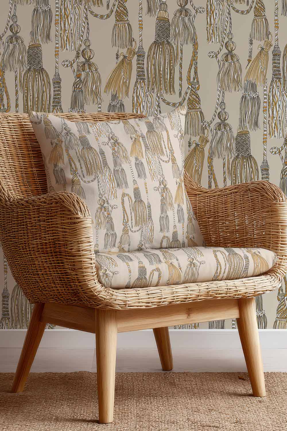 Tassel Trellis Upholstery Fabric | Imperial Sand