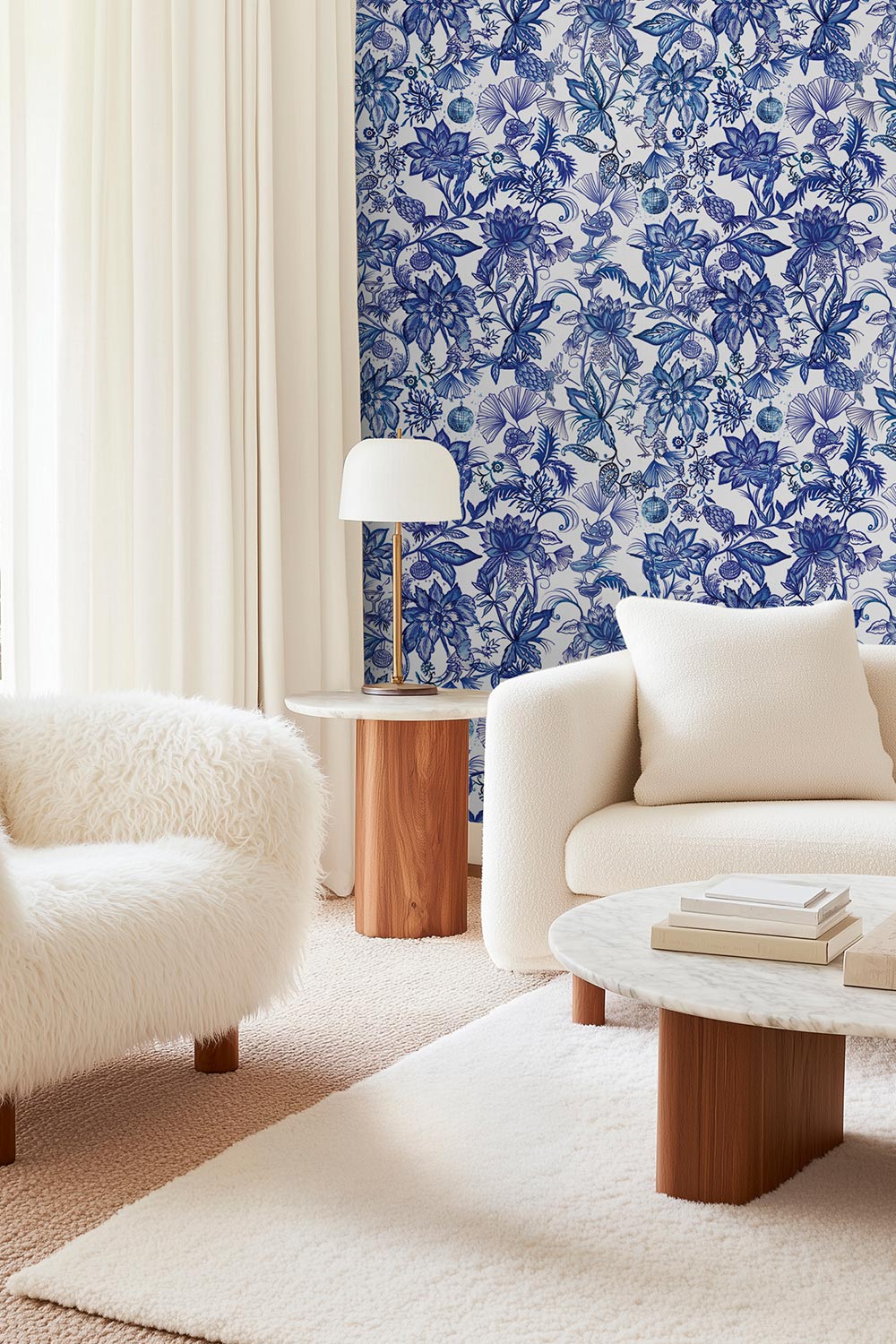 Floral & the Frog Chinoiserie Grasscloth Wallpaper | Azure Blue