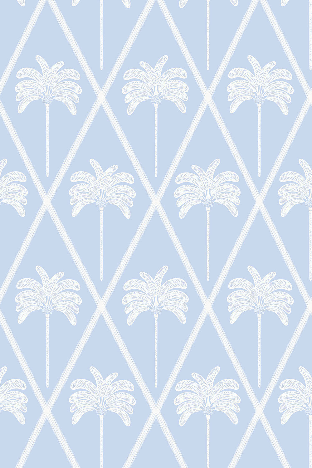 Palm Tree Garden Grid Performance Vinyl Wallpaper | French Blue