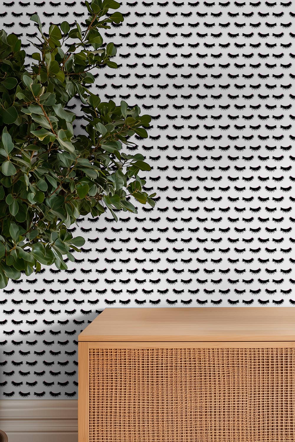 eyelash wallpaper, mascara lash wallpaper, beauty room wallpaper, girly stripe wallpaper, makeup studio décor, eyelash stripe pattern, glam wallcovering, hand painted lash wallpaper