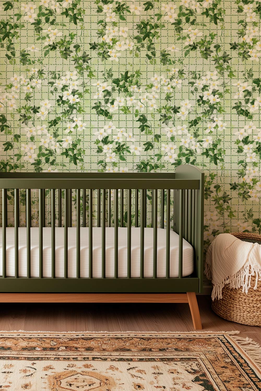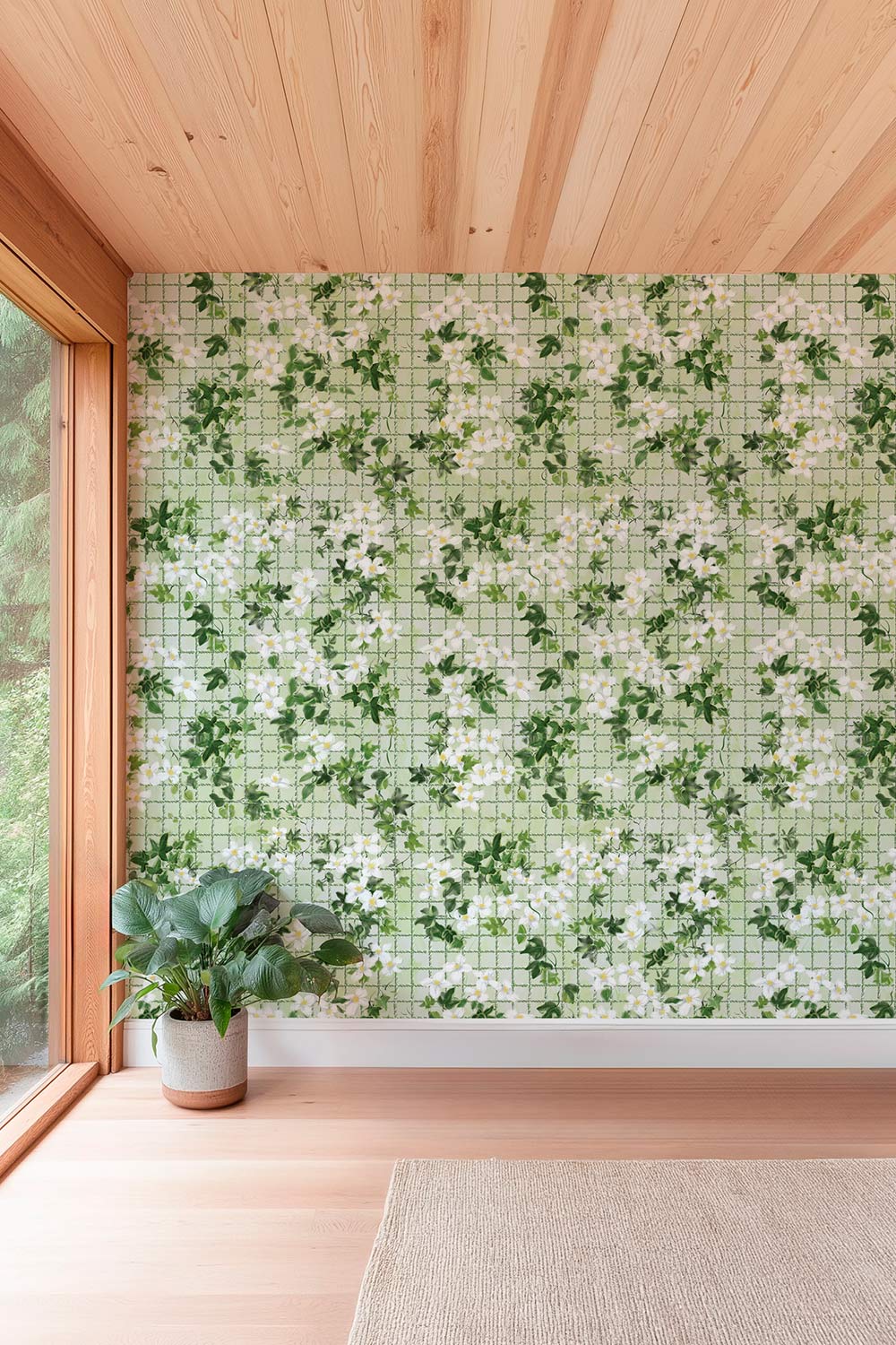 Ace of Ivy Tennis Floral Performance Vinyl Wallpaper | Sage & Serve Green