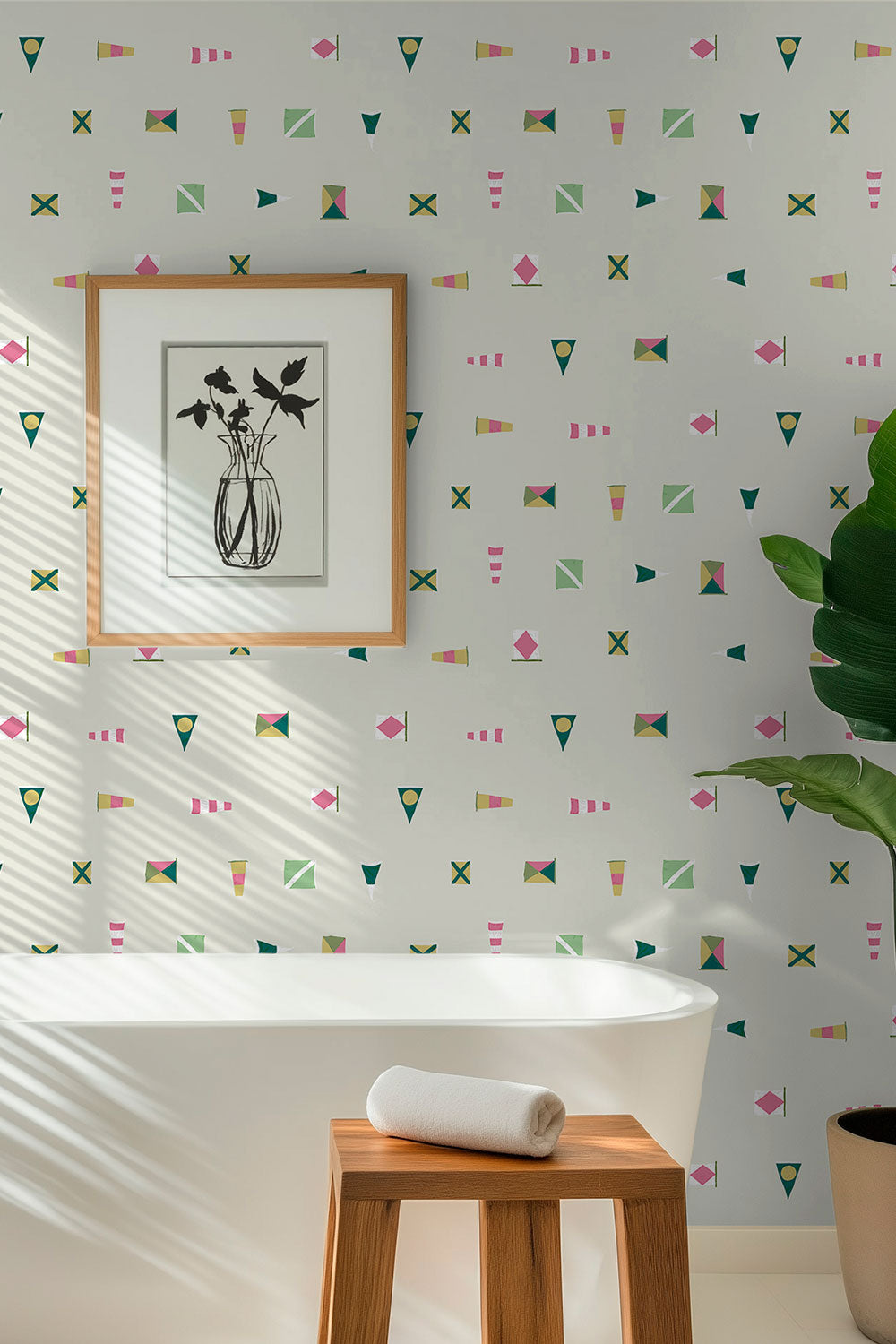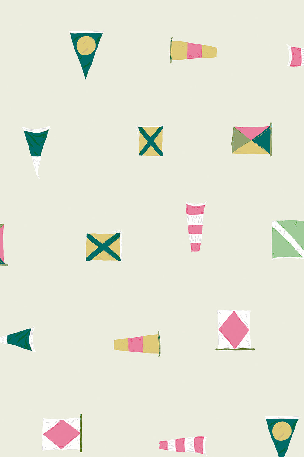 Nautical Flags Aflutter Performance Vinyl Wallpaper | Caribbean Green & Pink