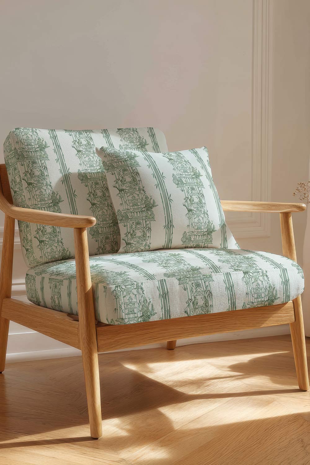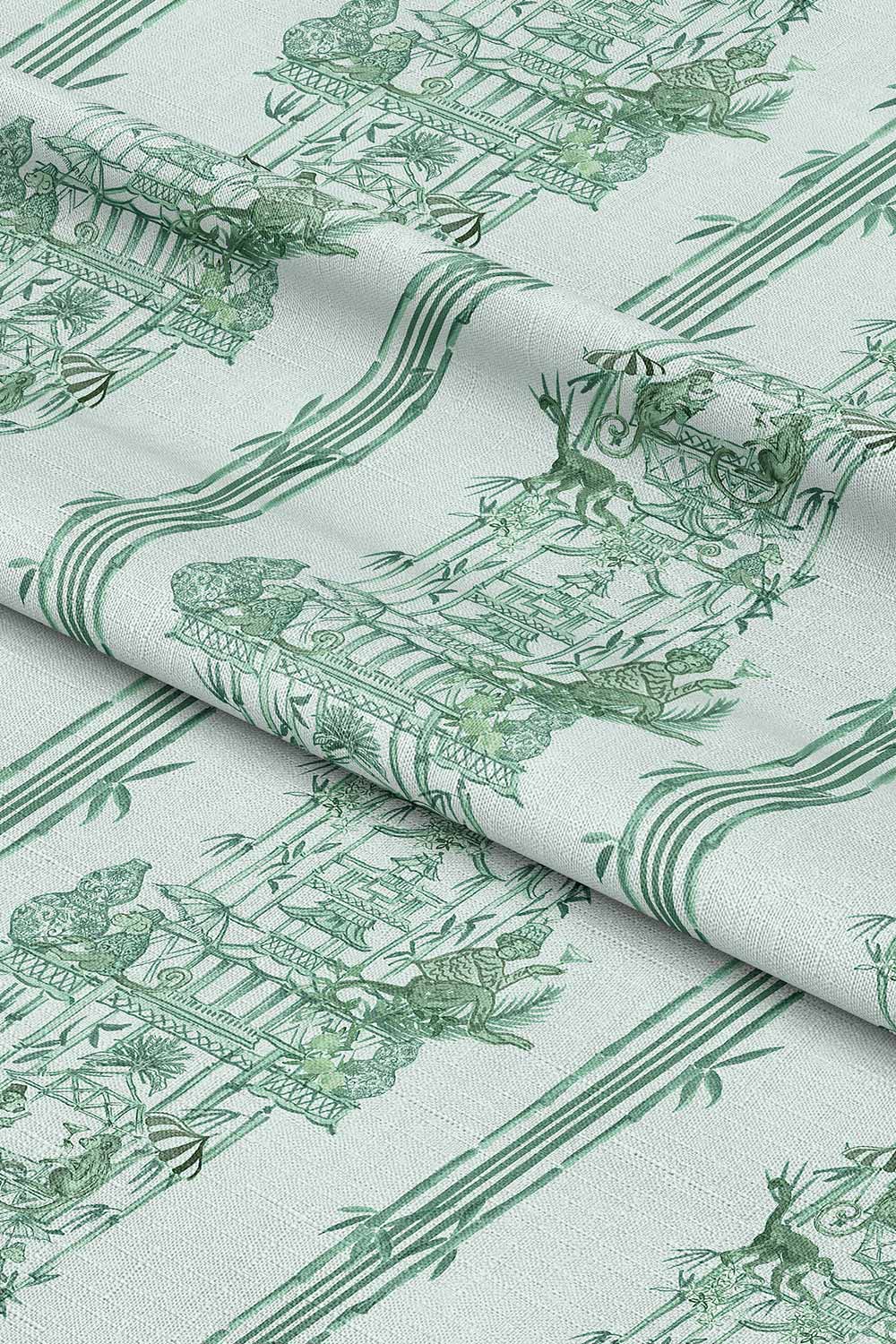Chinoiserie Shenanigans Toile Upholstery Fabric | Jade Garden Green